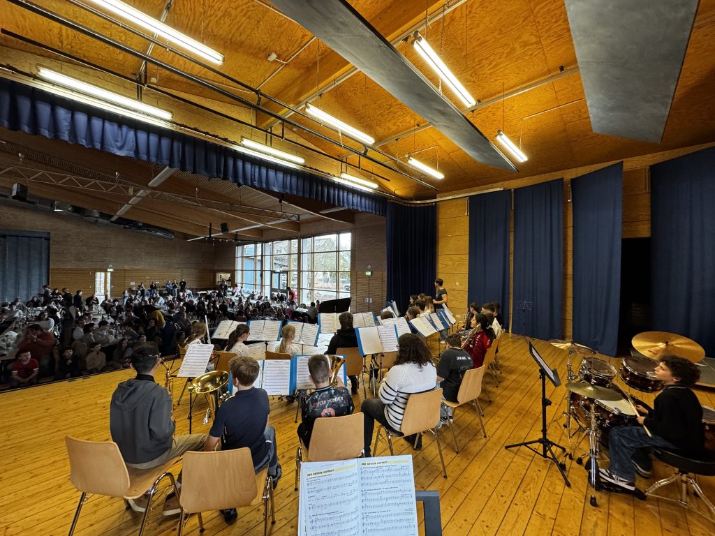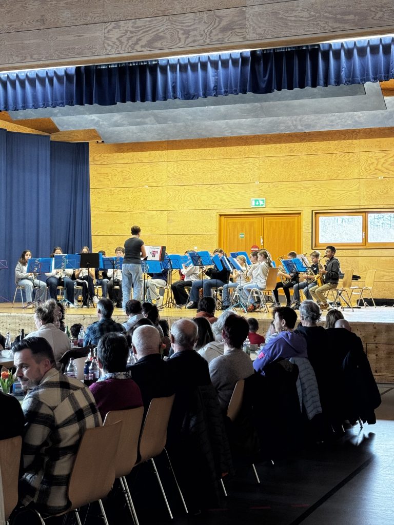 Nachmittags zeigten dann zuerst die kleinsten Musiker ihr Können. Die Blockflöten spielten bekannte Stücke vor gefüllten Zuschauerrängen, bevor auch die Bläserklasse und das Vororchester die eingeübten Stücke zum Besten gaben. Den Abschluss des Vorspielnachmittags machte die gemeinsame Jugendkappelle mit Hardt und Rötenberg – die JuKa Ha-Rö-Wa. Auch dieses Jahr durften die kleineren Kids den JuKa-Spielern bei zwei Stücken über die Schulter schauen und mit viel Mut sogar mitspielen. Mit viel Applaus und Jubel ging der Vorspielnachmittag damit bei Kaffee und Kuchen zu Ende.